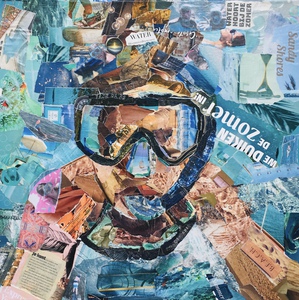 Een collage is een kunstvorm, die gebruik maakt van beelden en woorden van anderen voor het creëren van een nieuwe compositie. Je begint met een stapel tijdschriften, begint te bladeren, te scheuren en te schuiven tot je bij het beeld komt, wat je hebben wilt. In een collage zie je soms kreukels en de witte scheurranden, voor mij horen die erbij.